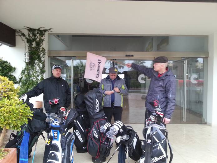 Aamu alkoi hieman hapuilun merkeissä, kun saunan oven avaimet olivat hukassa. Kukaan ei myöntänyt, mutta pieniä epäilyksiä oli. No bägit pakattiin taas pakettiautoon ja lähdettiin Santana Golfia kohti. Caddiemaster halusi tietää mitä ryhmää olemme. Yritimme selvittää asiaa, jolloin virkailija huusi: ”SIII SIII! GRUPPO AALTONEN!!!!!” Tämän jälkeen ryhmämme kulki nimellä Gruppo Aaltonen.