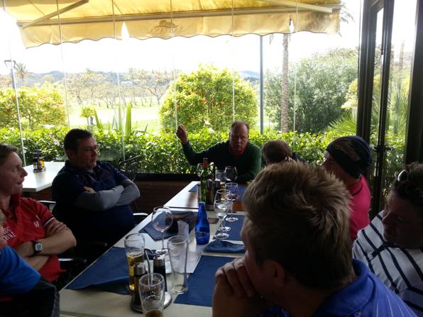 Kierroksen jälkeinen myöhäinen lounas oli maistuva ja maksumieheksi valikoitui Senór Olli. Kortinkäyttäjää tuettiin vetämällä erittäin kovaäänisesti, joskin mielestäni myös yllättävän puhtaasti Those were the days. Klubin ravintolassa meitä palveli reissun mukavin tarjoilija, joka muun henkilökunnan ja paikallisten asiakkaiden kanssa otti meidät omikseen. Masterin klubilla, jos olisi tämä setti vedetty, niin olisi saatu monoa perseeseen ja viisinkertainen lasku mukaan.