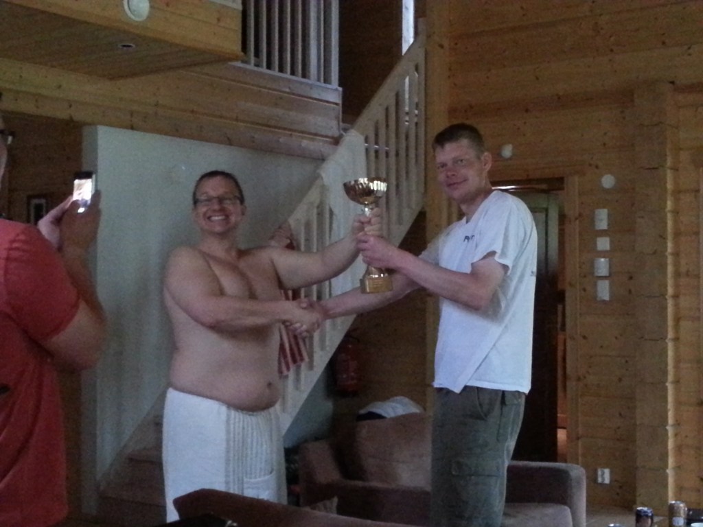 Lauantaina vuorossa oli sporttipäivä. Puolilta päivin Vierumäen Coach-kenttä eli par kolmonen kolmella ryhmällä läpi. Osa tuloskorteista jäi mystisesti kateisiin, selvää kuitenkin oli että voitto oli kahden kauppa. Jartsa ja Karri väänsivät tasaisesti ja lopulta Karri vei scratchin kahden lyönnin erolla. Kaverit pelaavat kutakuinkin samoille händäreillä, joten vuoden sikagolffarin pokaali päätyi tänä vuonna Karrin palkintokaappiin. Onnittelut siitä Karrille!