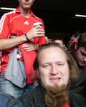 Koitti päivä seuraava. Murkinoimme kulinaarisen englantilaisen muonan, jonka jälkeen osa ryhmästä lähti lippuja illan peliin jaagaamaan. Samilla ja Dädillä oli tuplaliput valmiina, joten baari-iskussa.). Loistavaa, kaikki hoidossa saa toipua. Melkoinen määrä viinaa kitusiin ja areenalle. Vihreä verka oli luonnottavan kutsuva. Peli jokseenkin mitäänsanomaton. Kaikki 40000 huusivat Sami-Sami, Mikä tietysti lämmitti asianomaisia.