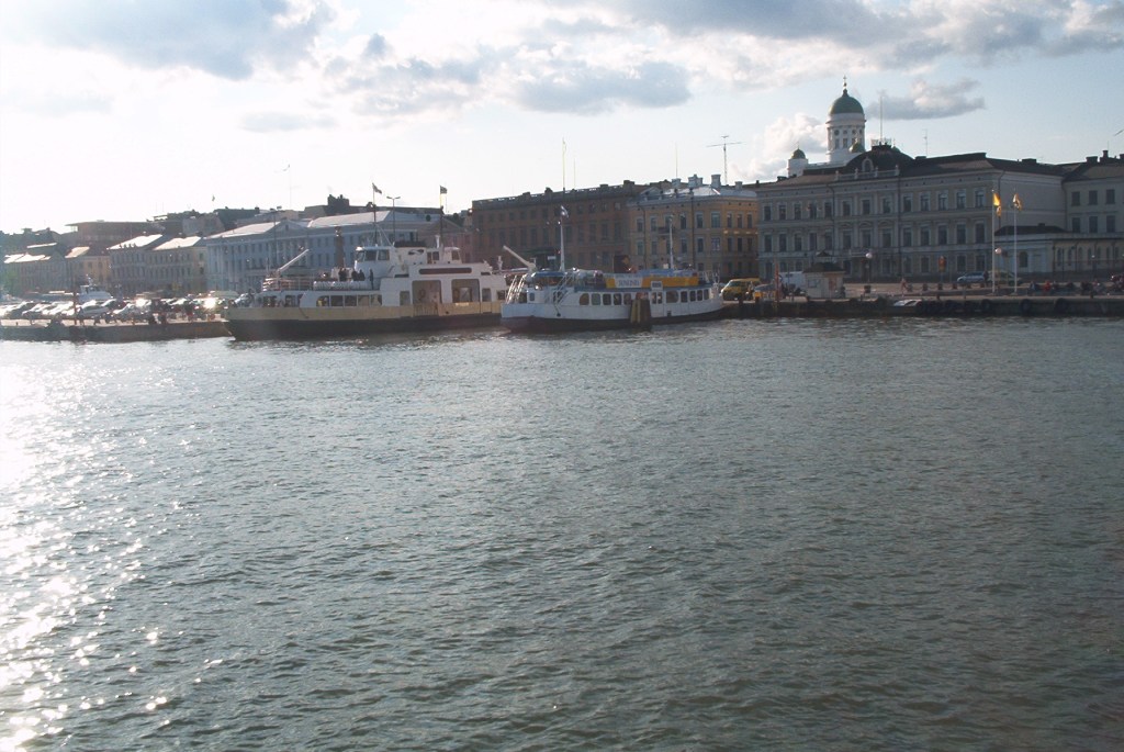 Otettiin siinä hiljaksiin keittoa ja puoli neljältä siirryimme vieressä odottaneeseen Runebergiin. Laiva lähti liikkeelle neljältä, joten olimme hyvissä ajoin varaamassa parhaita keulapaikkoja laivan kannelta. Fillarit nosteltiin laivan yläkannelle.