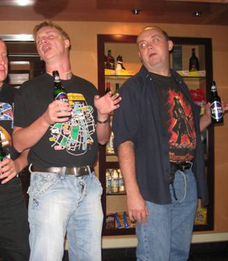 Sutinen ei lopulta pystynyt vastustamaan O’Learysin kutsua, joten Sutiset, Olli ja Kari tulivat Scandicista pian taksilla mestoille. Vietettiin kivaa iltaa, kunnes baarit menivät kiinni. Sitten otettiin pari taksia, joista toinen palasi Scandiciin ja me tultiin retkeilymajalle makedonialaishepun kyydissä. Siellä turistiin keskenään vielä muutama tunti himppusen verran huikkaa ottaen. Sellainen reissun päättävä napakka jurri päälle.