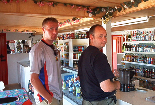 Sapuskan jälkeen meikä yritti kuulemma vetää pari kertaa moottorisahaa käyntiin ja pojilla oli hauskaa itse en muista tästä episodista mitään mainitsemisen arvoista. Pizzapaikasta siirryttiin sitten sujuvasti samaan tyhjään yökerhoon jota oli kannatettu alusta alkaen pari bissee ja sitten taas cäbi alle ja paikalliseen aikuistenbaariin jossa viihdyttiin loppuyö. Ajoissa kuitenkin auringon kanssa kämpille koska aamulla olisi odottamassa siivous ja pakkaaminen eli lähtö takaisin mantereelle. Yöllä kuitenkin mieleenpainuvin episodi oli Veikon ja minun väittely siitä mitä ammattilaisten kanssa tehdään tarjotaan paukkuja vai jotain muuta?