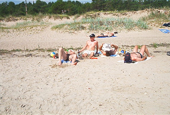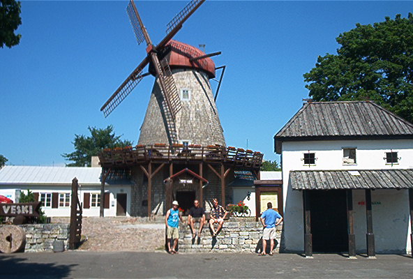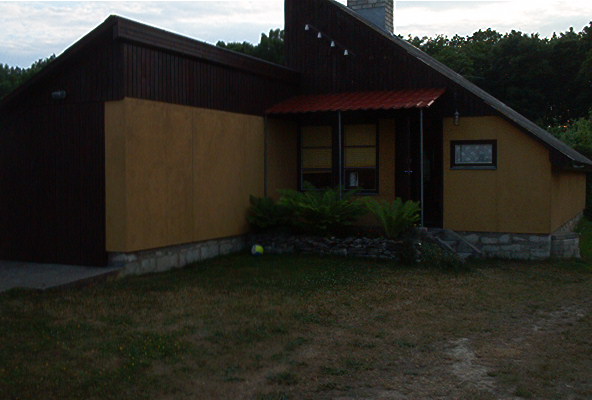 Lauttaan päästiin ja matka Saarenmaalle kesti n.1 tunnin ja 2 siideriä. Kuivastusta ei muuta kuin nokka kohti Kuressaarea eli Saarenmaan suurinta kaupunkia josta kämppä oli vuokrattu. Siellähän Helge Kuuk jo odottelikin Kuressaaren ensimmäisessä liikenneympyrässä vaaleassa Moskvitsissä.Hämmentys taisi olla aikamoinen kun Nissanista tuli ulos viisi karvasta sikaa eikä mitään pariskuntia, en ollut muistanut mainita varausta tehdessä että paikalle tulisi pelkkiä miehiä, esittelyt suoritettiin ja Helge lähti ajamaan edellä Puhkemajaa kohti ja kohta oltiinkin jo perillä.