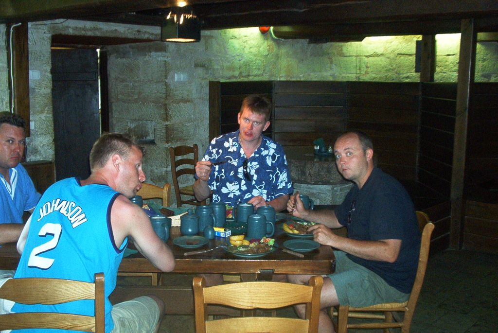 Safkan jälkeen takaisin kämpille ja keittoa ottamaan. Bastu jäi sinä iltana lämmittämättä sen verran punaiset selät joka ukolla että saunaan ei tehnyt mieli. Keittoa sopivasti ja sitten taas kaupungille taxilla. Samat paikat auki ja taas melkein ainoat asiakkaat Tiistai-ilta.