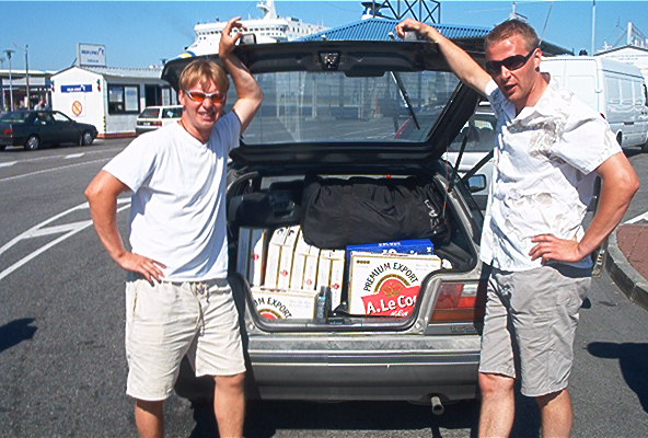 Aamu oli taas nätti ja nukuttiin pitkään. Brekkarille mentiin sataman Hesburgeriin. Paska paikka hampurilaista sai odottaa ja cocis oli todella pieni(0.25) aterian mukana. Brekkarin jälkeen matka jatkui kohti keskustaa ja tuliaisten ostoon. Raatihuoneen torilla vielä bissellä ja sitten takaisin satamaan ja autoa hakemaan. Pojat ostivat vielä 10 laatikkoa bisseä ja auton lastaamisessa oli tekemistä.
