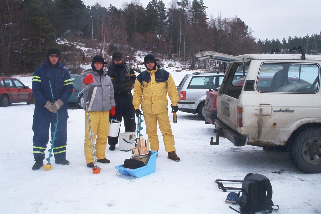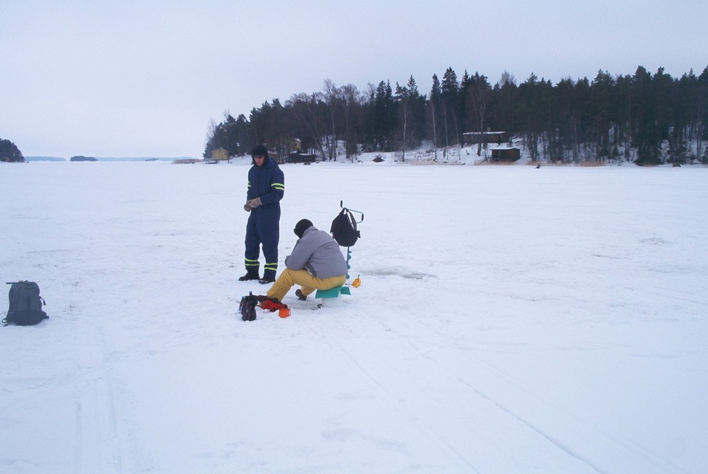 Matkaan lähdettiin lauantaiaamun hämärissä Tikkurilan asemalta. Hannu kurvasi kymmeneltä hakemaan sikoja ja keli oli pilkkimiselle mitä mainioin. No joo, olisihan aurinko voinut paistaa, mutta edellisvuotiseen verrattuna nyt oltiin paratiisimaisissa oloissa liikkeellä. Pientä tuulenvirettä oli havaittavissa ja pakkasta muutama aste. Kaupan ja Hannun kämpän kautta saavuttiin Boxin rantaan varttia vaille kaksitoista ja siat olivat valmiina haastamaan luonnon…