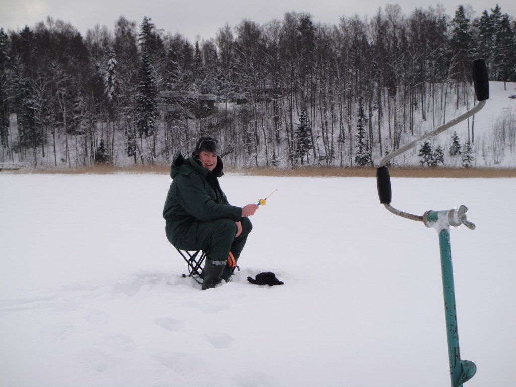 Kun katras oli tallustanut vetisen jään halki ottipaikalle, oli aika jakaa kärpäsen toukat ja laskea siima veteen. Osa sioista jatkoi aamun tapaan sisäistä marinointia, jotkut (autollaliikkujat) joutuivat tyytymään haaleaan kahviin.