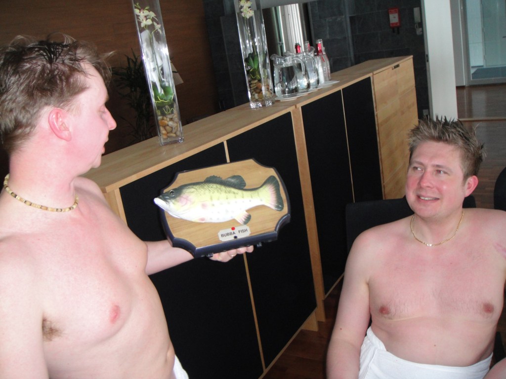 Iltaa jatkettiin siis Ifin saunatiloissa kaljan, pizzan ja yleisen viinanjuonnin ja örinöinnin merkeissä. Pitää sanoa, että on siat aika kovia bastumiehiä. Saunottiin varmaan 3 tuntia.
