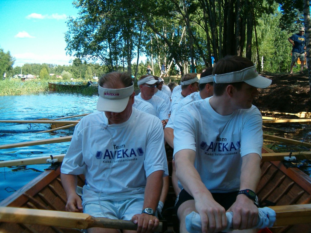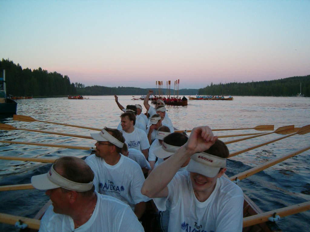 Tänä vuonna odotukset olivat taas hyvin korkealla jahdattaessa sitä Rösille niin maagista 5 ja puolen tunnin alitusta. Aihetta tähänkin oli, koska ensi kertaa päästiin soutamaan liikkuvilla penkeillä, jotka osoittautuivatkin varsin hyviksi ja ennen kaikkea inhimillisimmiksi kuin niin tutuiksi tulleet kiinteät perseensyöjät. Mukana oli taas kerran kautta aikojen ”paras ryhmä” ja ilma piti huolen siitä että lihaksisto pysyi lämpimänä (niillä joilla semmoinen löytyy) koko soudun ajan. Karu ja tuttu totuus taas oli se, että monet ”vanhainkodeista olevista martta-kerhojen mummoista” kootut ryhmät lipuivat kevyen näköisesti Rösin venhon ohi, jälleen kerran. Lipittivät varmasti puolisen tuntia aikaisemmin sitä soudun jälkeen niin makoisalta maistuvaa siideriä kuin meidän omat Sikamme. Katkeraa, mutta niin totta. Elämä on laiffii!!!