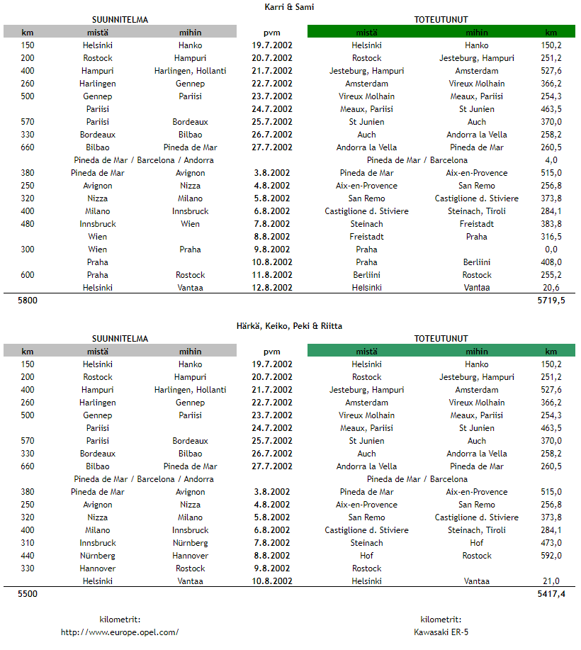 Huh-huh, olipas reissu. Tuli tosiaan valittua ajankohta lomalle. Suomessa oli lämpimimmät kelit 100 vuoteen ja Keski-Euroopassa kovimmat sateet ja tulvat 500 vuoteen. Toisaalta jos olisi ollut muutaman päivän myöhemmin liikkeellä, homma olisi mennyt vielä mahdottomammaksi. Etukäteen suunniteltiin kaikki suht hyvin ja toivottiin asioiden menevän putkeen. Keli oli suunnitelmissa ainoa toivoon perustuva asia, mille ei itse voisi mitään ja sehän olikin sitten ajoittain aika perseestä.