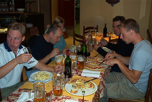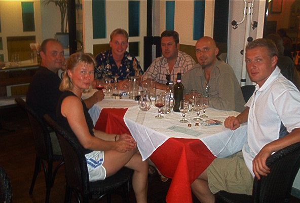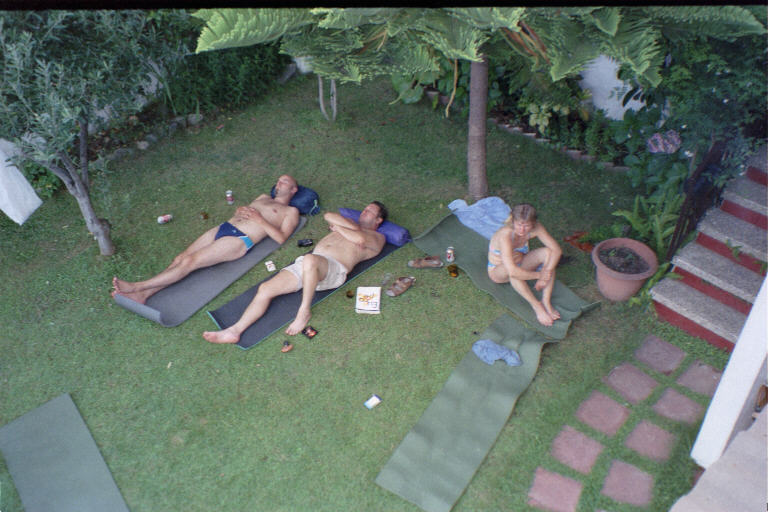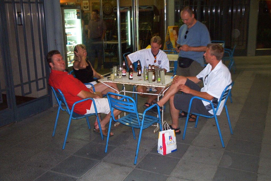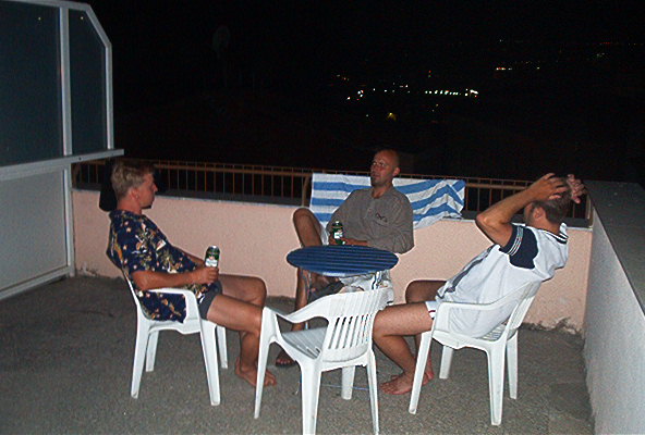 Ruoan jälkeen vaihdoimme kreikkalaiseen ravintolaan Taverna Mikonosiin, jossa äärimmäisen ystävälliset tarjoilijat tarjosivat meille ouzot oluiden kyytipojaksi. Sehr gut! Uni maittoi teltassa (!) puoli kahden maissa.