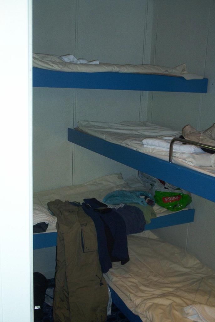 Pyörien sitominen kävi todella ripeästi. Budjettiluokkaa siivottiin ja jouduttiin vielä jäpittämään käytävässä parikymmentä minuuttia. Lopulta päästiin hyttiin ja hikisistä haalareistä lähtevä valtava käry täytti pienen hytin välittömästi. Eihän täällä voisi olla…