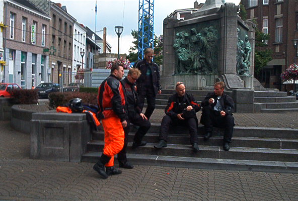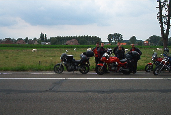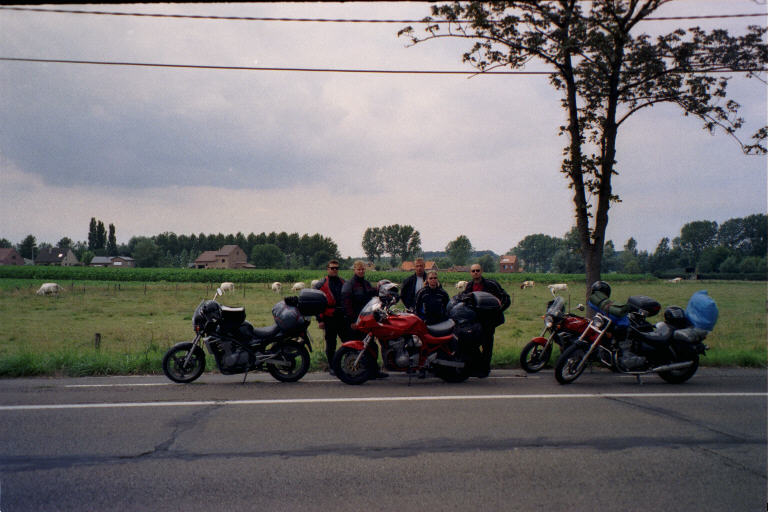 Belgia puolella eka stoppi oli Turnhout –nimisessä ’kylässä’ ja yksi kaveri meinasi jyrätä mun yli mersullaan. Ajeli paskianen kävelykadun tapaisella keskustaväylällä perkeleellistä vauhtia ja kun mä koukkasin sen edestä parkkiin, vesseli ajoi muutaman kymmenen sentin päässä mun perseestä räikkä soiden. Olisi pitänyt ottaa heppu kiinni ja kouluttaa vähän. Turnhoutissa nautittiin limut ja päätettiin kiertää Belgian isot cityt ja niiden vilkas liikenne. Todellinen kartan lukeminen alkoi, kun aioimme ajaa pienempiä väyliä maaseudulla.