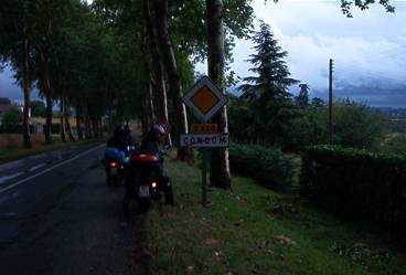 Oikea tie löytyi melkoisen ruuhkan seasta ja taivas aukesi. Condomin kierros oli todella kostea, kuten kai asiaan kuuluukin. Vettä tuli aivan helvetillisesti ja joka jamppa kastui todella pahasti. Condomissa käytiin tankilla ja päätettiin jatkaa heti kohti Auchia. Piti kuitenkin käydä ottamassa se legendaarinen No Condom-kuvakin.