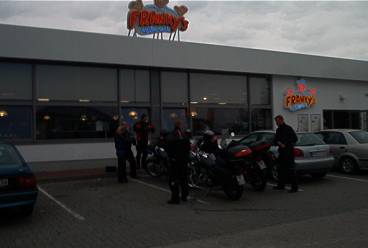 Alkumatka Bremeniä kohti oli sateista, mutta parinkympin jälkeen sade loppui. Keli oli edelleen pilvinen, mutta lopulta varsin mainio ajaa, kun tie kuivui. Bremenin paikkeilla pidettiin pikku breikki ja matka jatkui Westerstedeen. Siellä olimme puoli kahdeltatoista ja takana oli jo 180 km. Kävimme syömässä pikaisen lounaan mäkkärissä pitääksemme Keikon tyytyväisenä ja kävimme samalla tankilla.