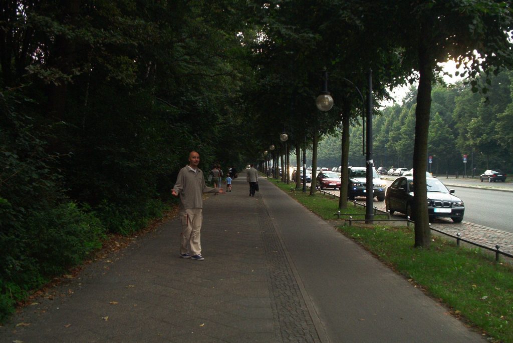 Kävelimme lähemmäs seitsemän kilometriä, kunnes löysimme ensimmäisen baarin. Baari Saksassa, eikä sieltä saanut olutta!!! Aikamoinen shokki – onneksi läheltä löytyi toinen pubi ja tilanne korjaantui. Tuopin jälkeen jatkoimme samaa valtavaa katua eteenpäin, kunnes ymmärsimme käydä pummaamassa eräästä hotellista Berliinin kartan. Olimme tulleet muinaisen muurin ympärillä olevasta keskushässäkästä kilometrejä ohi ja melkein vanhalle olympiastadionille asti.
