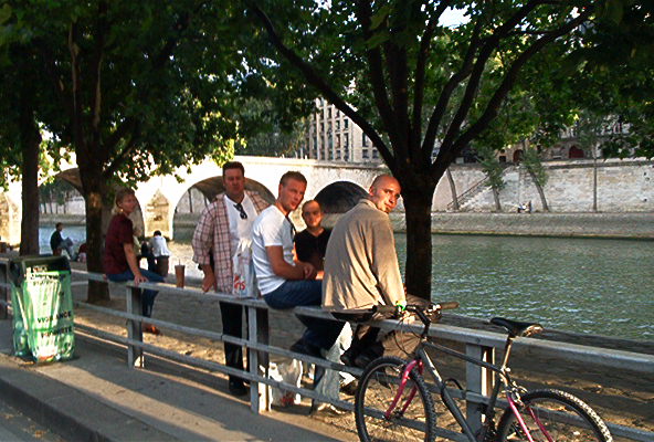 Kahdeksan maissa hipsittiin asemalle ja junamatka Paris Estin asemalle vei puolisen tuntia. Junassa pudotettiin punkut ja bisset naamaan ja varsinkin Karri alkoi saamaan ärsyttävän vauhkojurrin päälle. Gare Estiltä singahdimme metroon ja La Chanellen asemalle. Dallailtiin hetki kaupungilla ja käytiin periranskalaiseen tapaan syömässä gourmetateriat Quickissä. Viereisestä kaupasta otimme parit kaljat kantoon ja jatkoimme dallailua Seinen rantaan.
