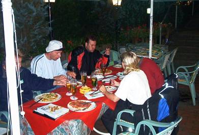 Päätimme pyörähtää vielä puolen kilsan päähän kylälle hakemaan purtavaa ja ottamaan pari bisseä. Idyllisestä kylästä löytyikin viihtyisä Ristorante La Grotta, jossa oli miellyttävä terassi. Loistava pizza parmankinkulla, roquefortilla ja mozzarellalla kera ison tuopin upposivat nälkäiseen mieheen mainiosti. Kaikki muutkin ylistivät eineitään ja veikkanpa ettei se johtunut pelkästään nälästä.