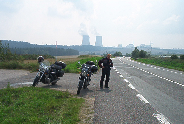 Harhailimme hetken Tshekin maaseudulla ja ongelmia tuotti se, että alueen pienet tiet eivät olleet kartallamme. Aikamme pyörittyämme löysimme isomman tien ja sieltä huoltoaseman tankilla käyntiä varten. Bensan hintaa oli vaikea arvioida, koska meillä ei ollut hajuakaan paikallisesta valuutasta ja sen arvosta. Onneksi kansainväliset luottokortit kelpaavat niillä syrjäkylilläkin. Alue oli luonnosuojelualuetta ja maisemiltaan upeata. Sinne myös rakennettiin lomakeskuksia järven rannalle ja se lienee varsin suosittua mökkeily- ja telttailuseutua. Tankin jälkeen suuntasimme Cesky Krumlovin kautta Cesce Budejoviceen. Siellä olisimme taas alunperin suunnitellulla reitillä.