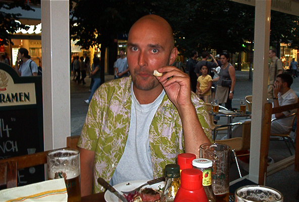 Einehtimisen jälkeen kävelimme entisen muurin reunaa Brandenburgille ja takaisin metrolle. Metrolla tulimme Pankowiin puolenyön maissa ja otimme vielä yhdet nopeat paikallisessa kebabpaikassa. Sen jälkeen äijät olivatkin valmista kamaa nukkumaan. Koska Karri ei ollut vielä kävellyt riittävästi, räkäpässi hyppäsi spårasta kaksi pysäkkiä liian aikaisin pois ja saimme kävellä vielä vajaan kilsan verran hotellille. Selailimme vielä hetken paikallisia TV-kanavia, kunnes noutaja tuli nukkumatin muodossa.