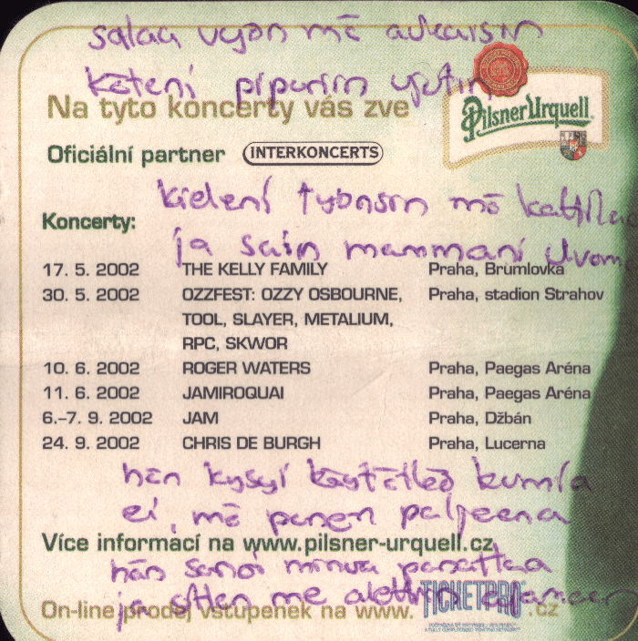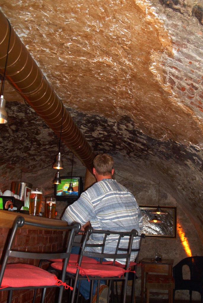 Vähitellen päätimme lähteä kämpille päin, mutta ajattelimme ottaa vielä yhdet biusat matkan varrella. Mentiin lähellä kämppää olleeseen kuppilaan, jossa olimme olleet edellisenäkin iltana. Baarimikko muisti meidät ja niin näytti muistavan monet asiakkaistakin. Arvelin homman olevan tyypillistä tshekkiläistä ystävällisyyttä. Hetken aikaa pyödässä istuttuamme huomasimme kuitenkin paikassa olevan vain miehiä, kaksi niistä oli alkanut tanssia hitaita ja baarin käytävällä olevalla ilmoitustaululla oli kansikuvia selkeistä homolehdistä. Ilman mitään fobioitakin tuli hieman ahdistava olo ja poistuimme kuppilasta suhteellisen nopeasti. Ei ollut meidän baari. Muutenkin virta alkoi olla lopussa ja dallailimme kämpille nukkumaan.