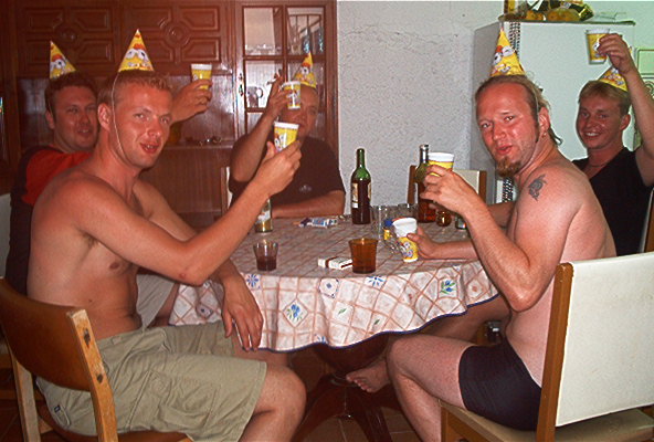 Innostus oli suuri, kun saimme sanat kirjoitettua. Useiden tuoppien ja muutamien paikallisten schnapsien jälkeen pettymys oli kuitenkin suuri, kun keskustan baareja alettiin sulkea suht aikaisin. Valuttiin hiljalleen kämpälle päin ja matkan varrella keskustan ulkopuolella oli vielä sentään useita pikkukuppiloita auki. Niissä sitten istuskeltiin, kunnes kahden maissa könysimme kämpälle. Alakerran kauppa oli vielä auki ja otimme sieltä vielä evääksi muutaman pivon kämpille.