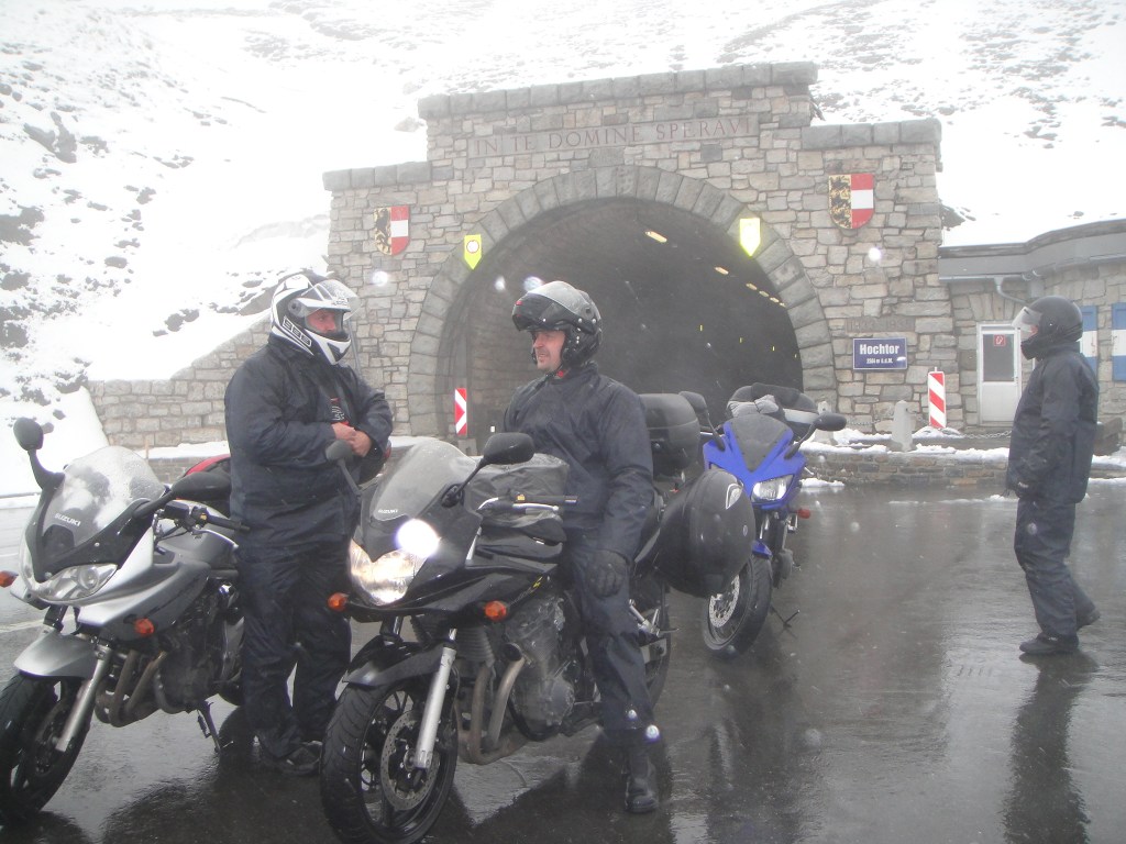 Hienoa mutkatietä kokoajan ylöspäin hyvässä kelissä, kunnes huipulla oltiinkin pilvessä. Rännän sekaista luntakin satoi välillä. Näkyvyys ylhäällä oli todella kehno, joten ajeltiin märkää serpentiiniä hyvin varovaisesti. Huipun jälkeen käytiin vielä toisella nousulla Franz Josefs Hüttella kahvilla vähän lämmittelemässä. Hienot näkymät vastapäiselle jäätikölle. Huipulta laskeuduttaessa keli taas kirkastui yhtä nopeasti kuin oli noustessakin muuttunut lumisateeksi.
